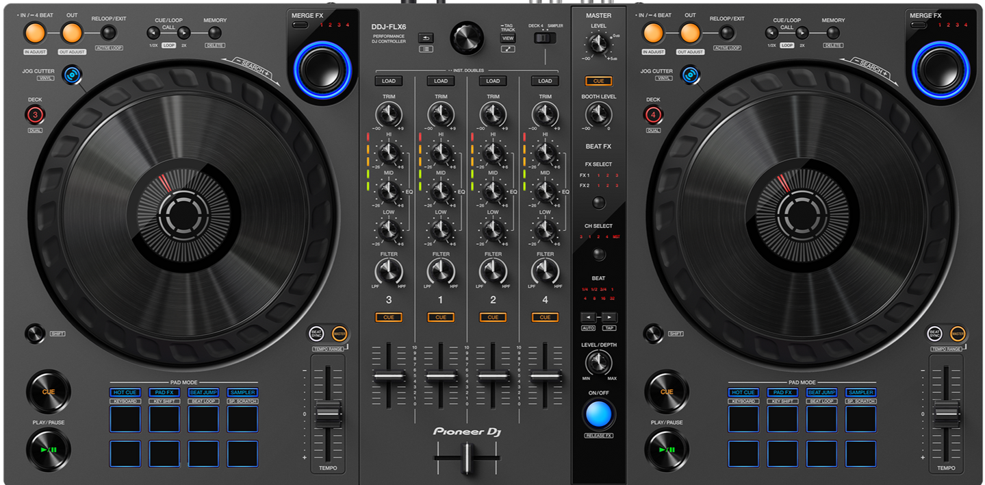 DDJ-FLX 4 adalah versi penggantinya ddj 400. Alat ini sudah mendukung fitur multi device seperti Rekordbox dan serato. dan sudah menggunakan usb Type C untuk power ke laptop.HARGA: Rp 6.890.000